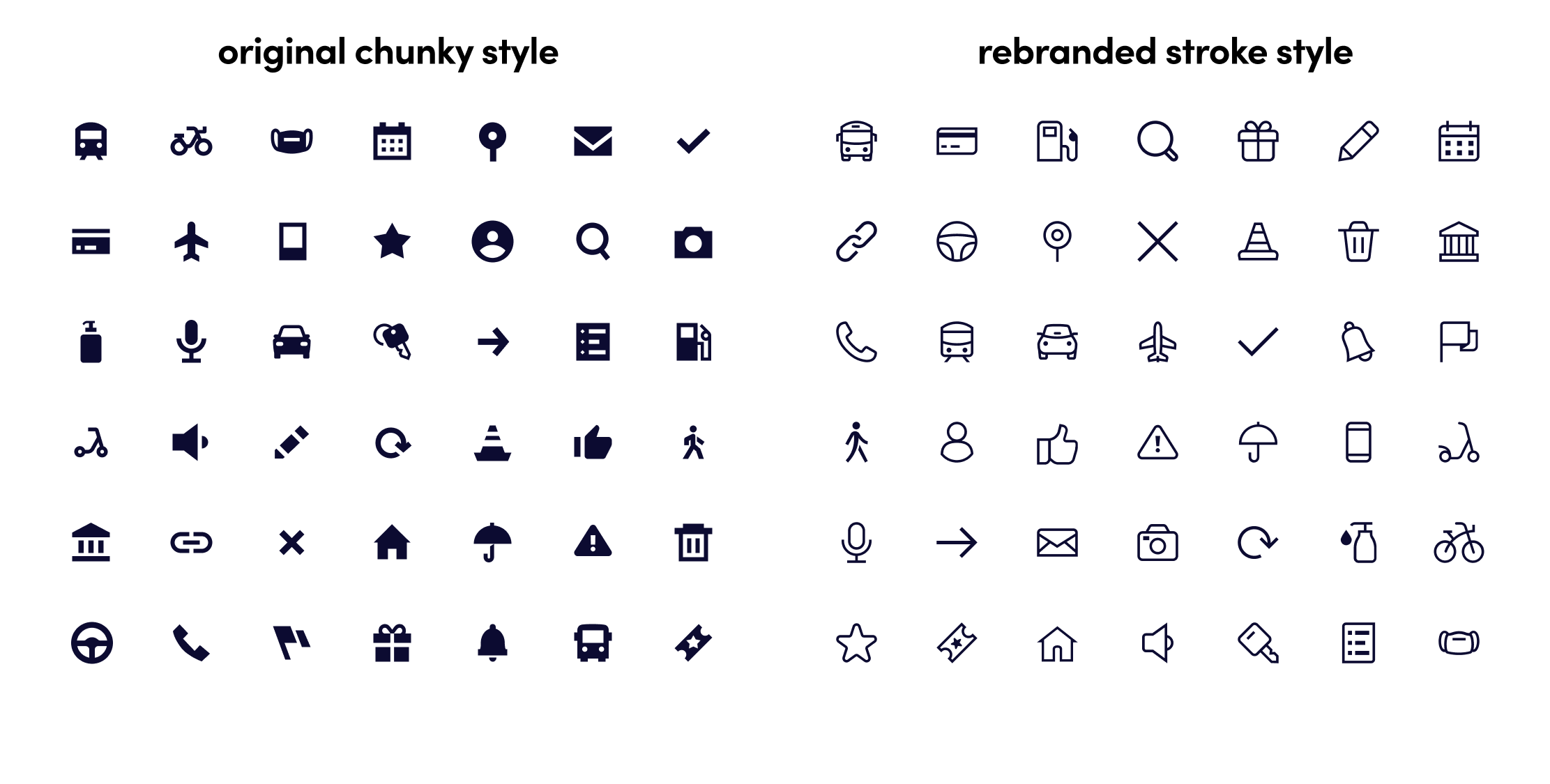 The iconography style development reinforced the systems changes by shifting from a blocky style that mirrored street signs to a more elegant stroked icon style. The mix of curves and blocked end caps are friendly without being juvenile. Sorting out the iconography was a super technical and complex problem that was fun to untangle… but it’s not very fun to write about so. That’s probably enough.